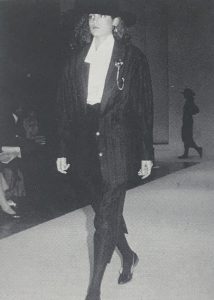 入社試験は3日間に分けて行われ、デザイン画とトワル組みの実技もありました。面接官は当時専門職の憧れの、「ゼルビナ」の川北コーディネーターで、またこの方が毒舌家で(笑)。その頃、雑誌『anan』で「おしゃれなデザイナーが通う神戸のバー」なんかで紹介されていたりして、もうほんとに憧れの存在だった。面接ではまず、「キミ、昨日と同じ服やね」と言われて。その時は面接に着て行く服なんてそんなに持っていなかったし、自分で作ったすごくお気に入りの服だったの。良かれと思って着て行ったのだけれど、言われた瞬間「あーー落ちたっ!」って。デザイナー志望としては、そういう所も見られているんだなと。そのあと、「キミ、絵はお上手やね」って言われた。「絵はうまい」ということは、デザインができているわけじゃないのだなって自分で解釈したの。だから最終的にはパタンナーを志しました。ちなみに、川北コーディネーターとは今も交流があって、年1回、「ゼルビナ会」で当時のメンバーが集まっています。