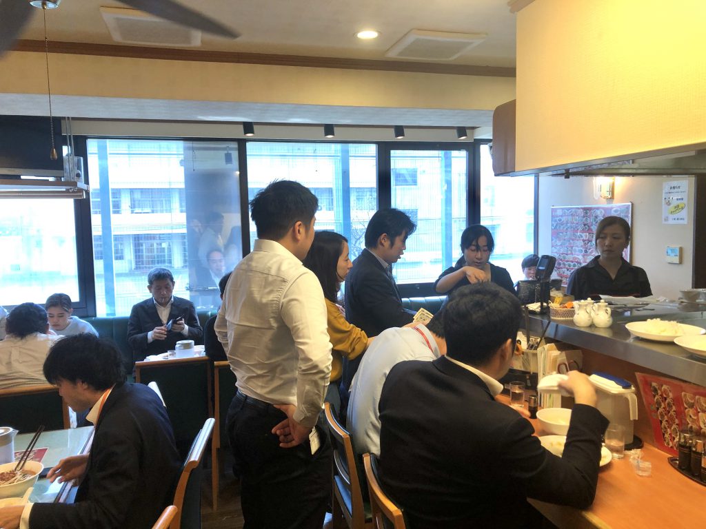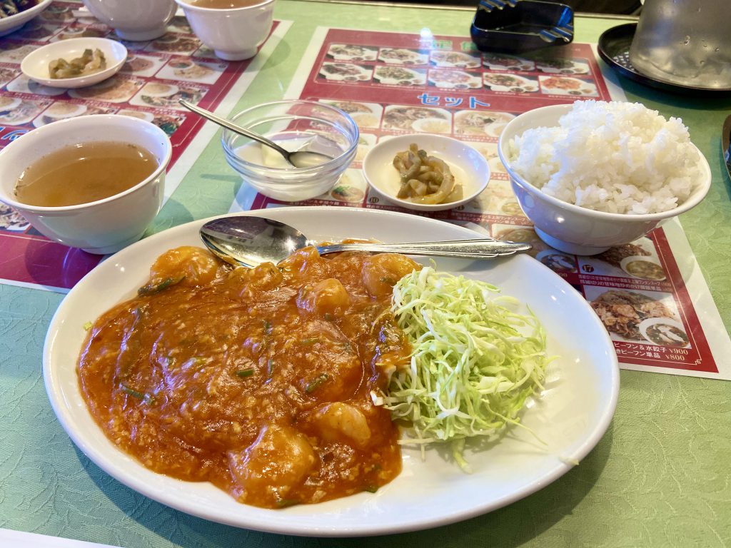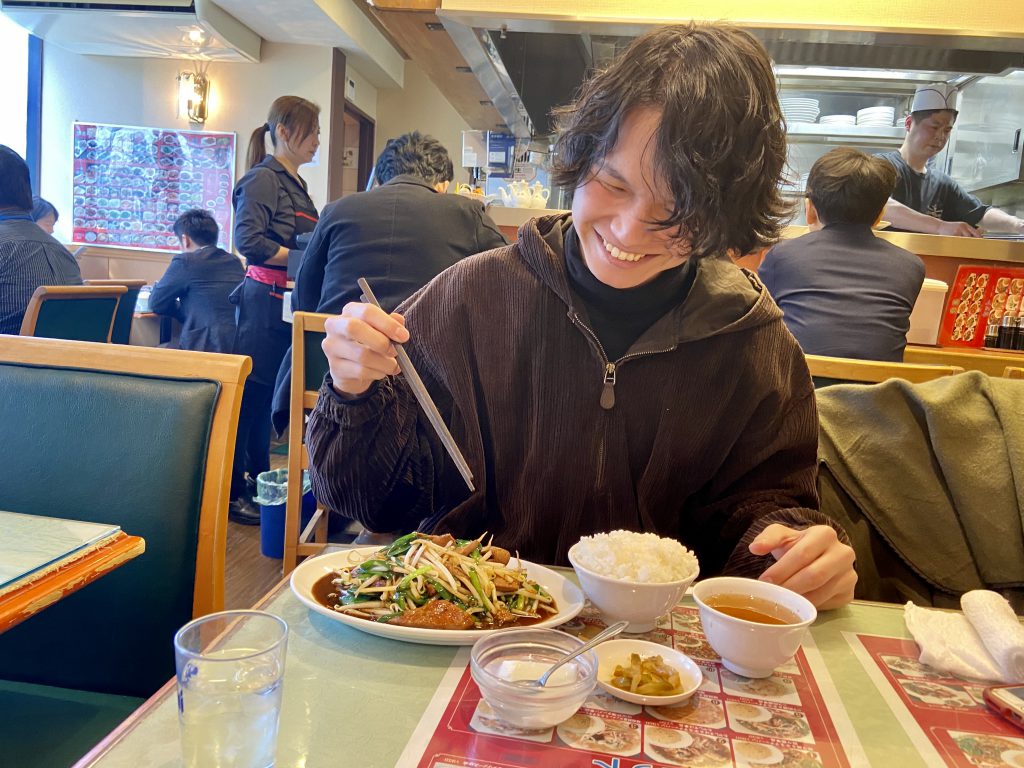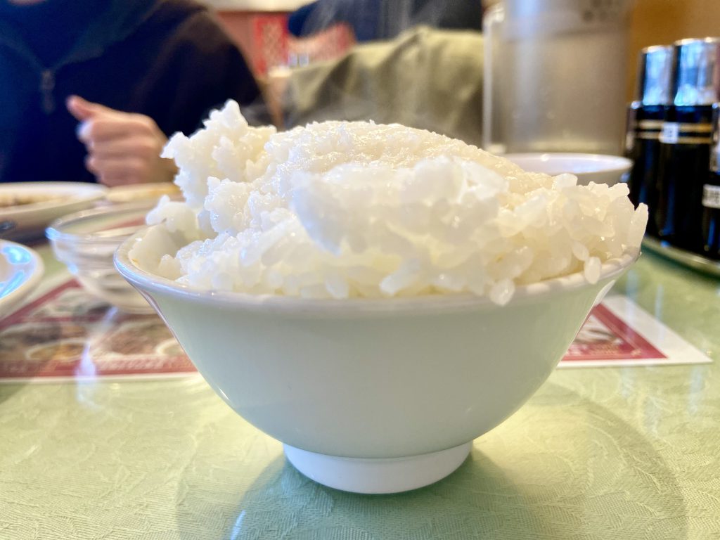「うまっ!!」ニラレバを一口食べて唸る石平くん。あまりニラレバは好きではないはずの五十川も「一口ちょうだい~。え、うまっ!!」さすがお店の人気メニュー。大きなレバーはパサパサ感がなく、しっとり。シャキシャキのもやしとニラとの相性抜群です。そして食欲をそそる香ばしいタレがとてもいい味!一口では全く足りません。。。後輩が頼んだにも関わらず、モリモリ頂きました。今日ですっかりニラレバが好物に。自分で頼んだエビチリはというと、、こちらも美味しいです!海老はぷりぷり、ピリ辛のチリソースたっぷりでご飯がすすみます。「チリソースだけで茶碗1杯いけますわ。。」と石平くん。今やすっかりサブカルボーイな彼ですが、実は学生時代ラグビー部。あっという間にライスをお替わり!ここのライス、ぎゅっと押さえるように盛られるので見た目以上にどっしりと重量があります。石平くんはあっという間に3杯目。五十川もライスをお替わり。2杯目のライスも容赦なくこぼれ盛りです。