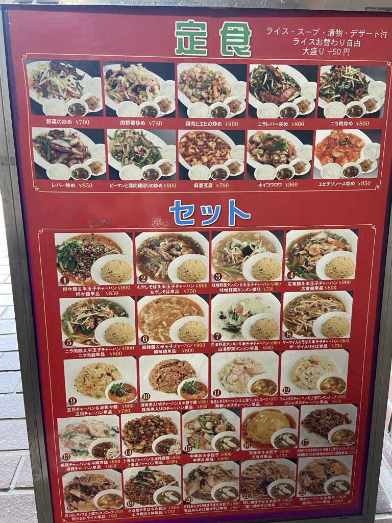もちろん二人とも大盛を注文!定食はライス・スープ・ザーサイ・デザート付きでライスはお替わり自由。定食のおかず大盛は+100円、セットの麺orご飯メニュー大盛は+50円と良心的です。