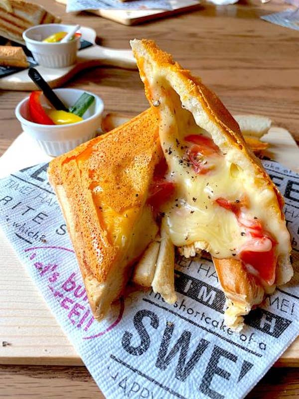 写真のふわふわチーズチーズチーズ(750円)はテイクアウト不可ですが、8種のホットサンドがテイクアウト可(各種700円~)なのでお近くにお立ち寄りの際はご賞味あれ。