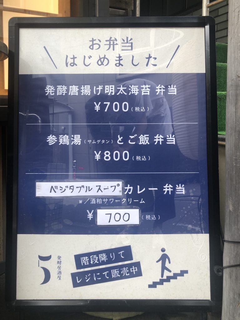表参道交差点のほど近いこちらのお店は「発酵」をテーマに、無添加と手作りにこだわった発酵居酒屋5。ランチメニューのお弁当販売がスタートしました。