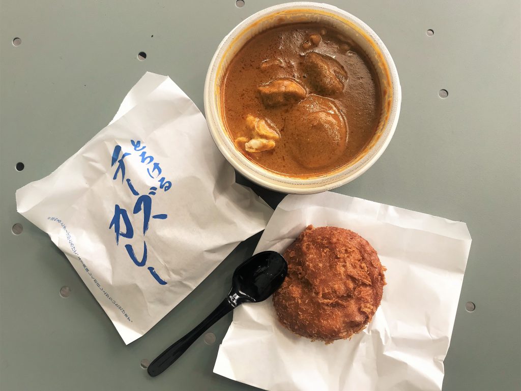 カレーパンだけでなく、カレーとサラダもテイクアウト可。この日はバターチキンカレー(カレー各種750円)とカレーパン2種(各250円)を。カレー尽くしになってしまいました、、笑