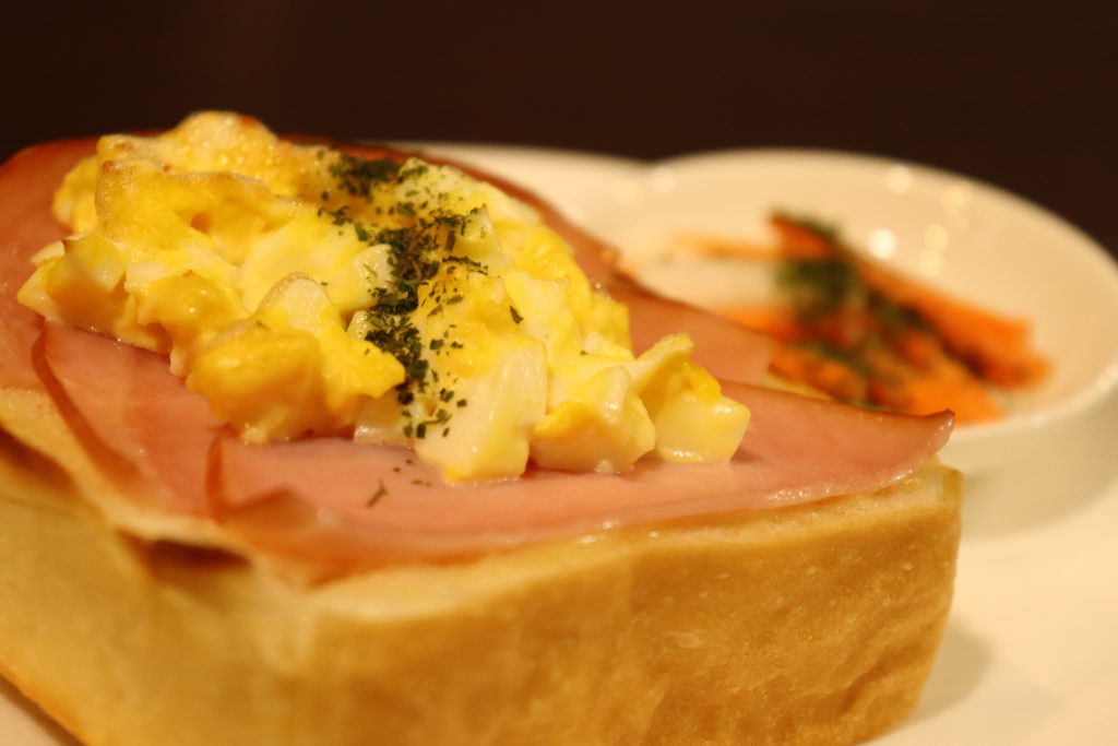 卵の粘り気がちょうどよく、口の中でハムとトーストと絶妙に絡み合います。卵のつぶし具合はその日の気分で決まるそう(笑)。毎日違った食感を楽しめますね。