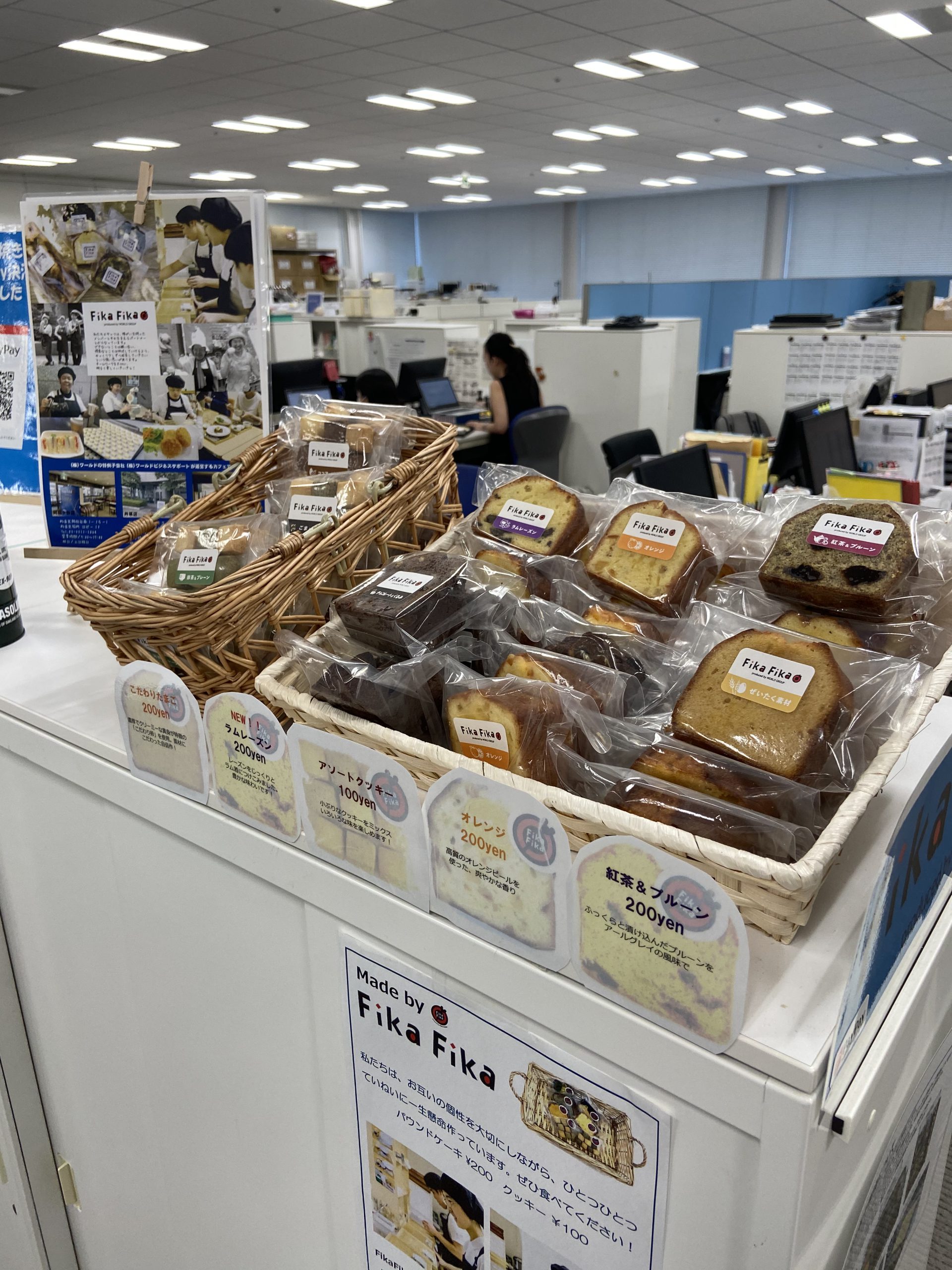 Fika Fikaのお菓子を3時の楽しみにしている皆さん!是非お店にも足を運んでみてください。ちなみに焼菓子は、神戸本社1Fカフェコーナー、晴海トリトン8F WBS隣、北青山ビル4F、12Fのカフェテリア 、14Fのカフェテリアで販売しています。