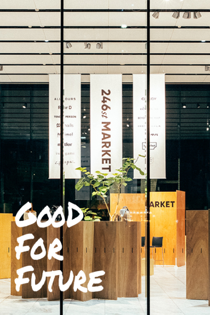 昨年秋から開始した「246st.MARKET」は、“GOOD FOR FUTURE”をコンセプトに、ファッションの発信地として時代を築いてきた青山通り(246号)に位置するワールド北青山ビルで未来をつくるクリエイターの新たな取り組みに出会うPOP-UPイベント。今回はテーマに“サーキュレーション・ライフスタイル”を掲げ、衣・食・住からアートまでの13ブランドをワールドがキュレーションします。