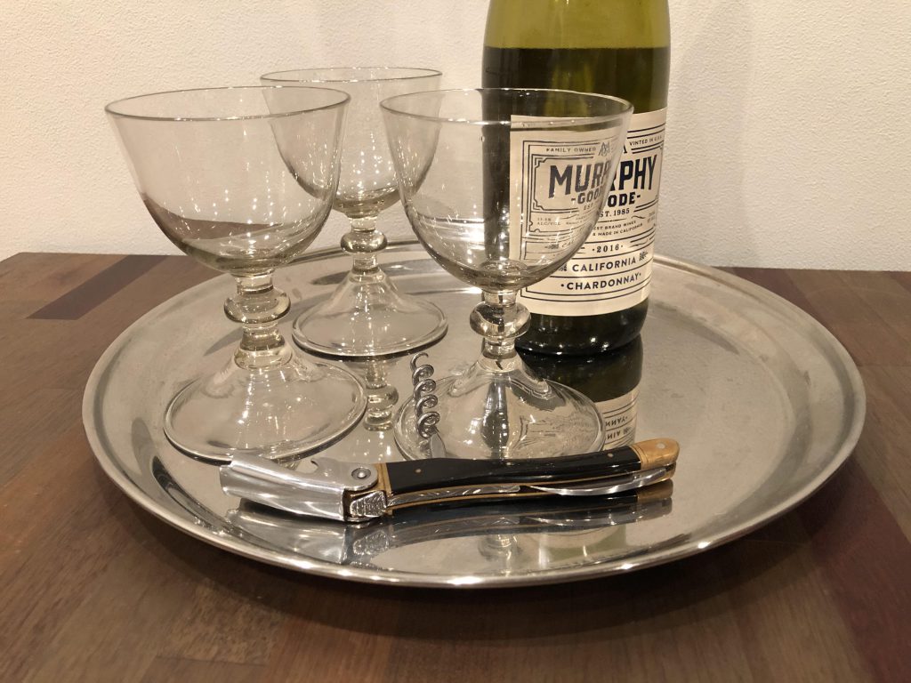 この二つは、毎晩行われる晩酌の必需品です(笑)。ラギヨールのワインオープナーはずっと欲しかったのですが、2年前にスタッフのみんなから結婚祝いとしていただいたものです。ラギヨールのワインオープナーは、プロのソムリエが一生使い続けるような伝統的な逸品なので、手なじみのよいカーブや滑らかさ、重さのバランスが良く、自分もソムリエの仲間入りができたような気がしてとても嬉しかった(笑)。グラスは20年くらい前に購入しました。前職時代、ベテランバイヤーが展示会用にフランスでオーダーしたのですが、量産できない品のため、残念ながら店頭に並ぶことはなく…。ということで、サンプルセールで運よく入手しました(笑)。ブランドなど詳しいことはわからないのですが、この絶妙なガラスの色味と独特なフォルムをとても気に入っています。白ワインとグラスの色と重なりなんとも美しく、ついつい進んでしまいます(笑)。