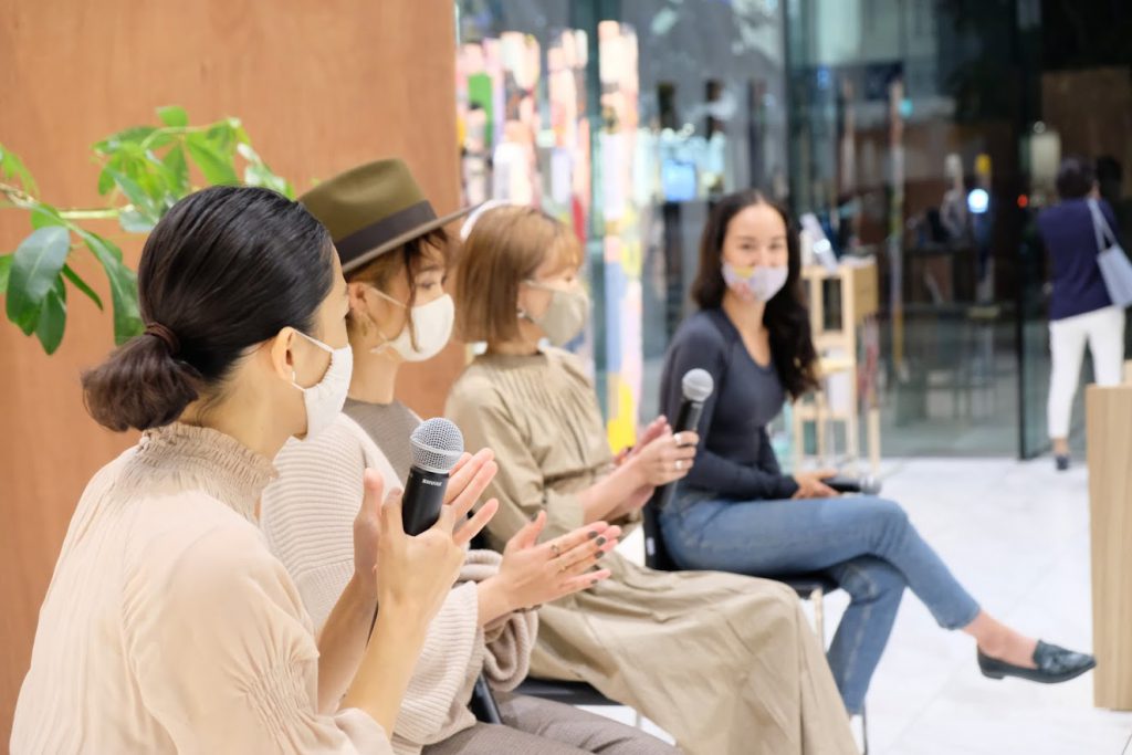 左からモデル・環境省森里川海アンバサダー 佐々木 依里氏、エシカルコーディネーター エバンズ 亜莉沙氏、モデル・環境省森里川海アンバサダー 鎌田 安里紗氏、No Plastic Japan主宰 ノイハウス 萌菜氏