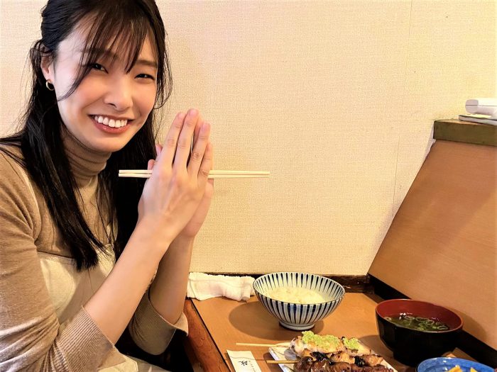 五十川姉さんが注文した定食は、銘店の焼鳥を本来あるべき姿で頂く、贅沢な品。写真では伝わりづらいのですが一本一本、しっかりボリュームがあります。よく見ると小焼鳥丼には乗っていなかったわさび焼きが。おねだりをして1つ頂くと、思ったより辛くない!香ばしい焼き鳥のタレが、わさびの風味を残して辛さを和らげてくれるので、丁度いい塩梅でした。