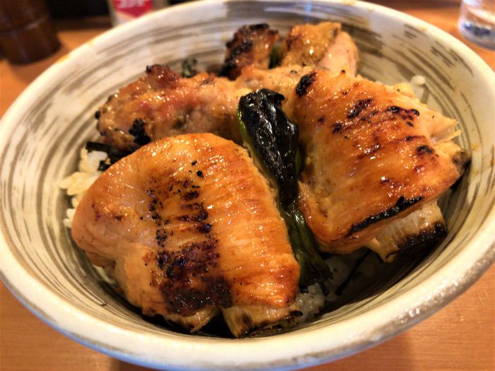タレがふんだんにかかったご飯の上には、鶏もも、ねぎま、つくね、レバーが。王道の鶏ももから口に運ぶと、あまりの肉々しさにびっくり!焼き鳥で味わったことの無い「肉を食ってる!」という感覚が押し寄せてきます。