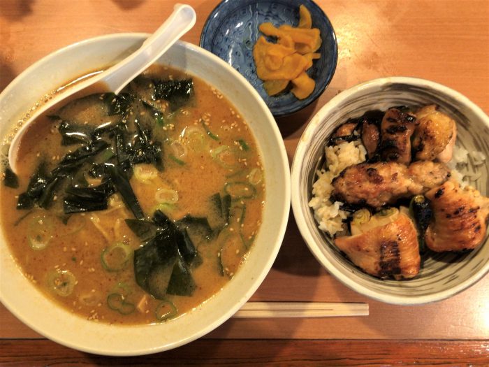 ラーメンセットには、ラーメンと小焼鳥丼が着いています。