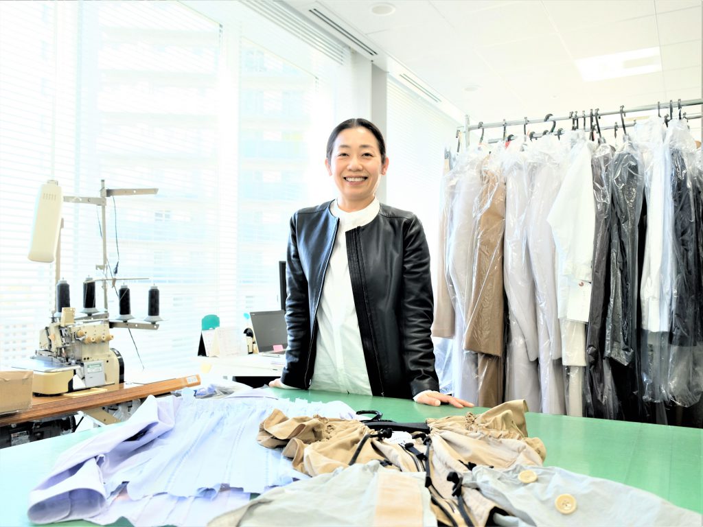 ワールド北青山ビル4Fで、リメイク加工をした1点物を前に