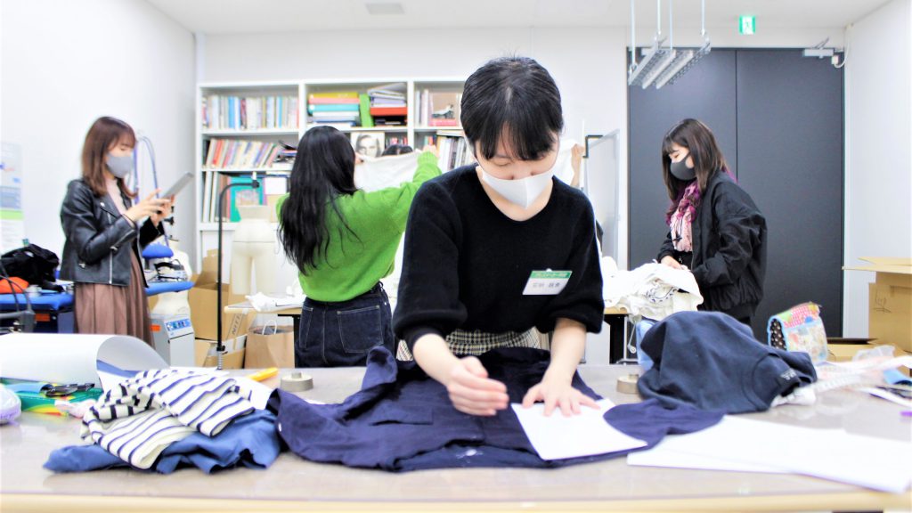 サステナビリティが社会の主なテーマとなりつつある中で、「つくる」ことがゴールではなく、素材となる廃棄商品の仕分け、リメイクで再生、自身で販売する体験を通じて「感じた事」「気付いた事」から環境適応型のファッションビジネスモデルを創造することを目的にした取組みです。