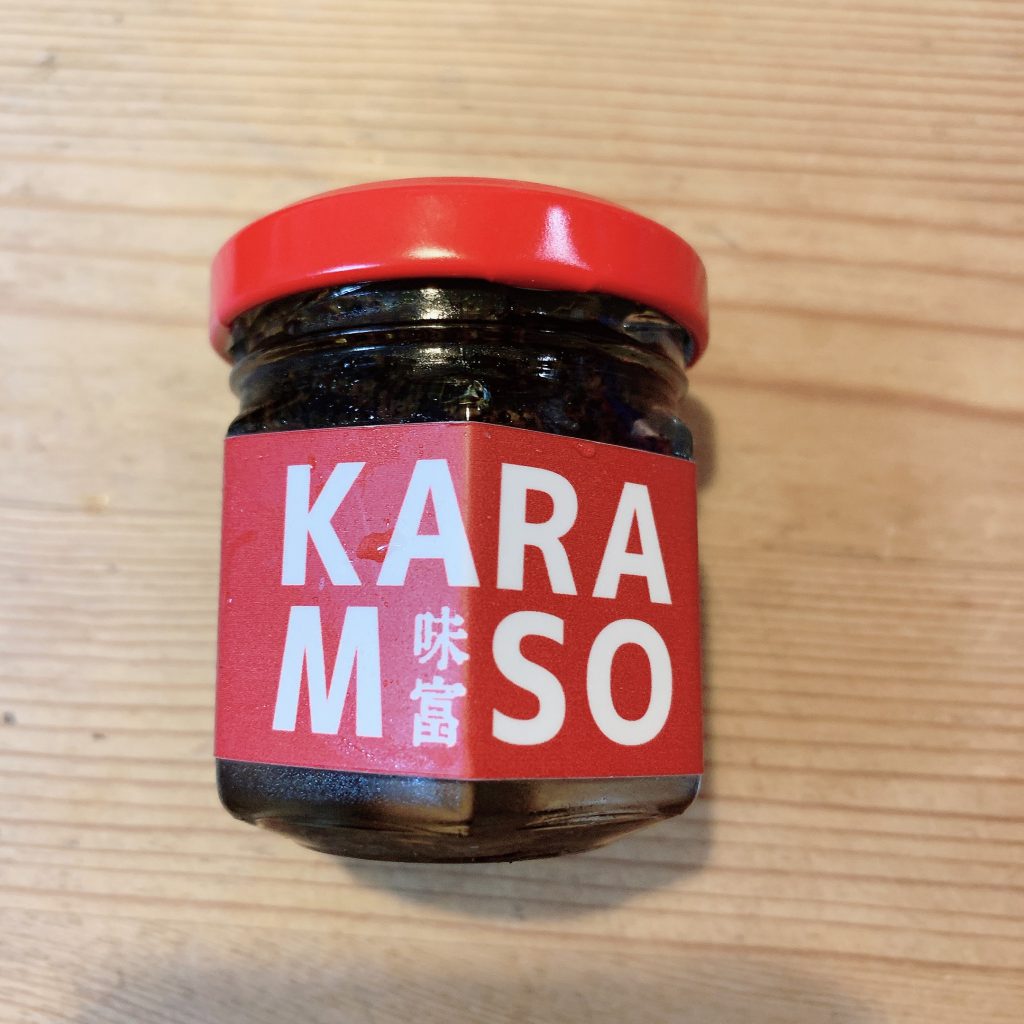 真っ黒な味富秘伝の味噌と、お酢でいただくのがマストです。(この黒い味噌、かなり辛いのでお気を付けください!)