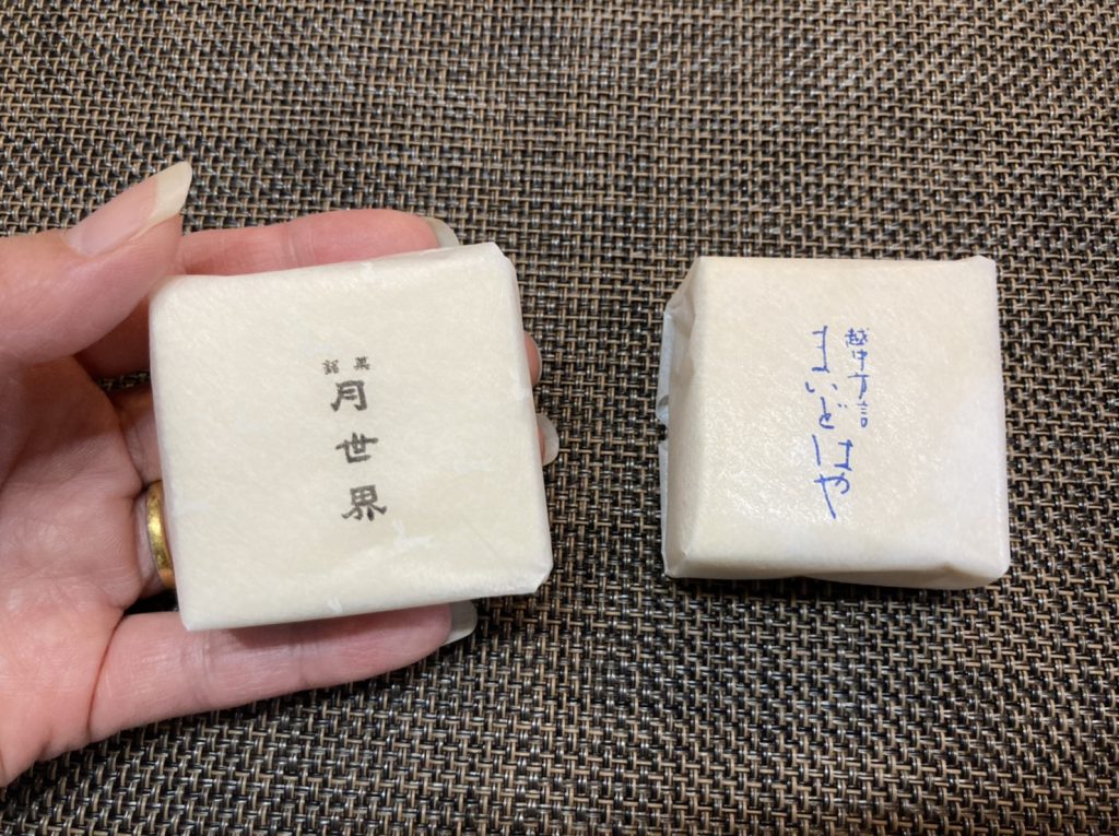 「富山を代表する銘菓、月世界。サクッと軽い口当たりでお茶はもちろん、珈琲や紅茶にも合うんです。まいどはやは越中人の『おげんきですか』『お変わりありませんか』という挨拶の言葉です。その響きを託されたお菓子は柚子の香りがふわっと広がり、モチモチの生地が後引く美味しさです。どちらも軽い口当たりなので気付いたらどんどん食べちゃっています…。インターネットからの注文も可能です」
