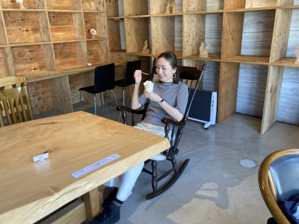 水団子パフェを見つめる表情がなんとも幸せそう…共感しかありません。編集を担当させていただきました五十川はワールドグループ内でも相当な(※本人調べ)甘いもの好きなので、水だんごパフェはまさに好きなもの全部入り。富山に行った際には、お写真で為近店長がお掛けになっているロッキングチェアで至福のパフェタイムを満喫したいと思います。