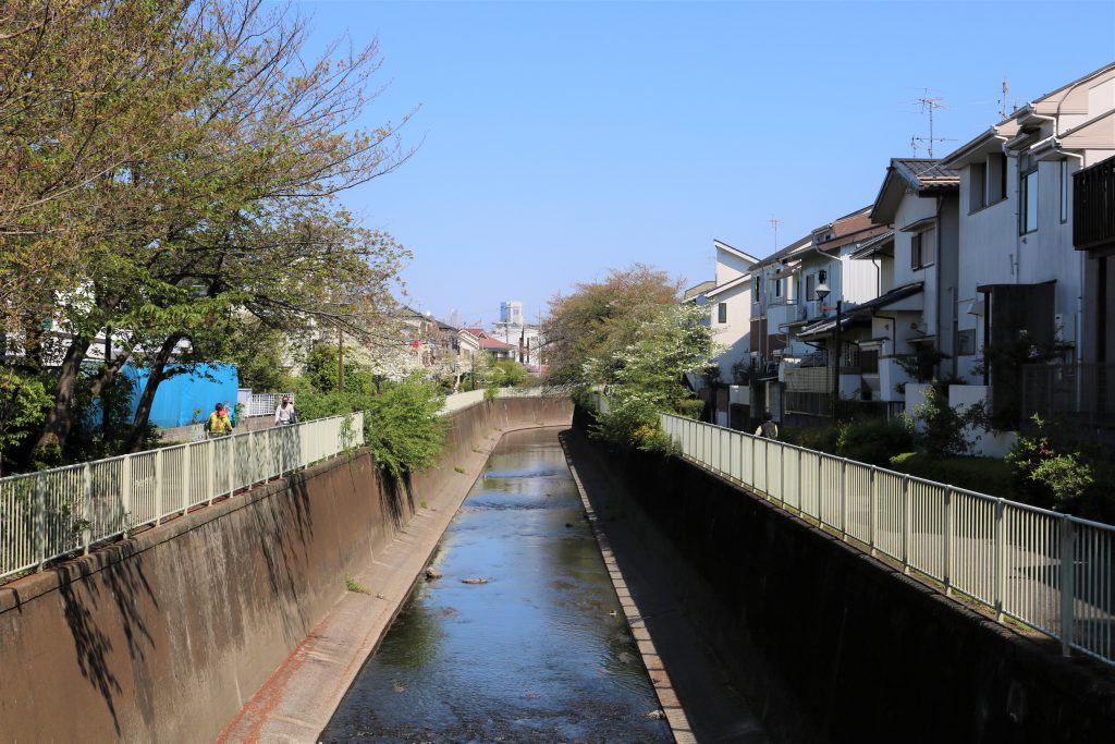 スタート地点は、「下高井戸八幡神社」。仕事の帰りや気分転換をしたい時に、いつもお参りをしている、お気に入りの神社です。夜になると提灯がついて神々しい雰囲気が満ちた空間になります。この日もお参りをしてから散歩を始めることにしました。今回歩くのは自宅の近くにある神田川のほとり。川沿いには綺麗に舗装された散歩道が続き、のんびり歩くのにはもってこい。今年は既に散ってしまいましたが、沿道には桜の木も多く、隠れたお花見の名所でもあります。