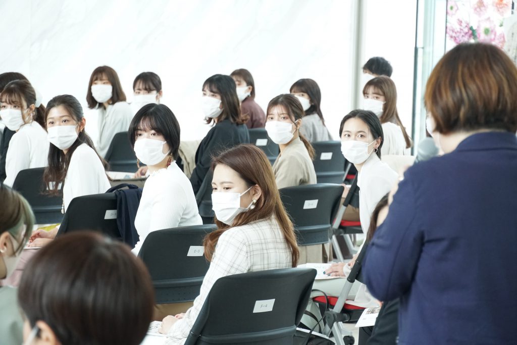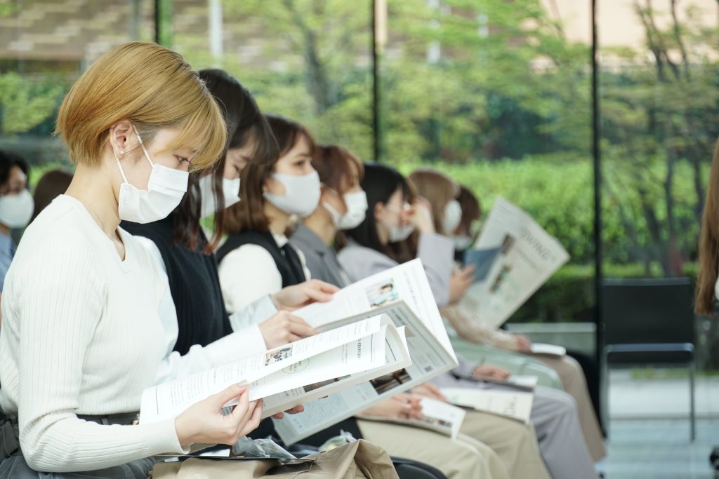 さらに先輩社員を代表し、AG by aquagirl 銀座インズ店の宮内 汐海さんとUNTITLED 玉川高島屋店の柴崎 智弓さんから新入社員へ祝辞が贈られました。新入社員のみなさんの表情は真剣そのもの。