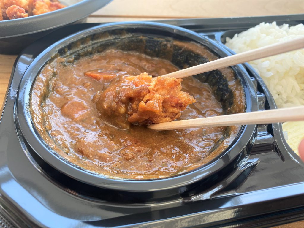 ご覧くださいこの唐揚げの量!しかも注文してから調理してもらえるので全て揚げたてでサクサクです。カレーはと言えば、とろとろになるまで煮込まれた牛すじが深いコクを生んでおり、こちらも美味!更に唐揚げをカレーに付けて食べてもグッド!唐揚げとカレーライスという男子が好きな食べ物の代表が、徒党を組んで、空腹だった胃袋に突撃してきます。