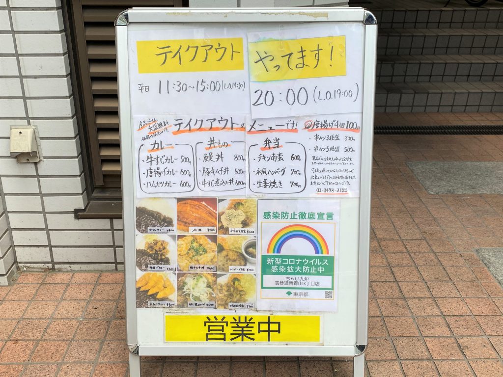 外の看板を見ると、テイクアウトもできるとのこと。今回はテイクアウトして、最近オープンした北青山ビルの14FにあるPARKで食べることにしました。イートインのメニューも魅力的ですが、次回の楽しみに取っておきます。