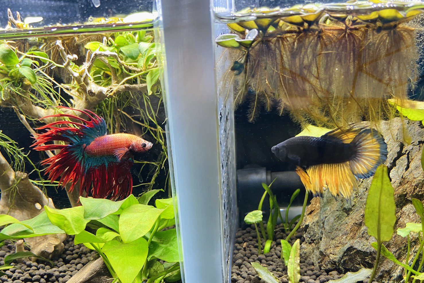 闘魚として有名なベタを飼っています。妻に「自分で責任を取って飼えるならいいよ」と許しを得たので(笑)。ヒラヒラしている尾ひれがとても綺麗ですよ!あと、動物ではないですが、ガラスケースの中で苔を育てる、苔テラリウムもやっています。公園で遊ぶのも生き物の世話をするのも服が汚れたりしますが、とてもいいリフレッシュになります。