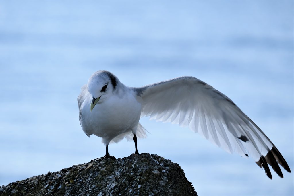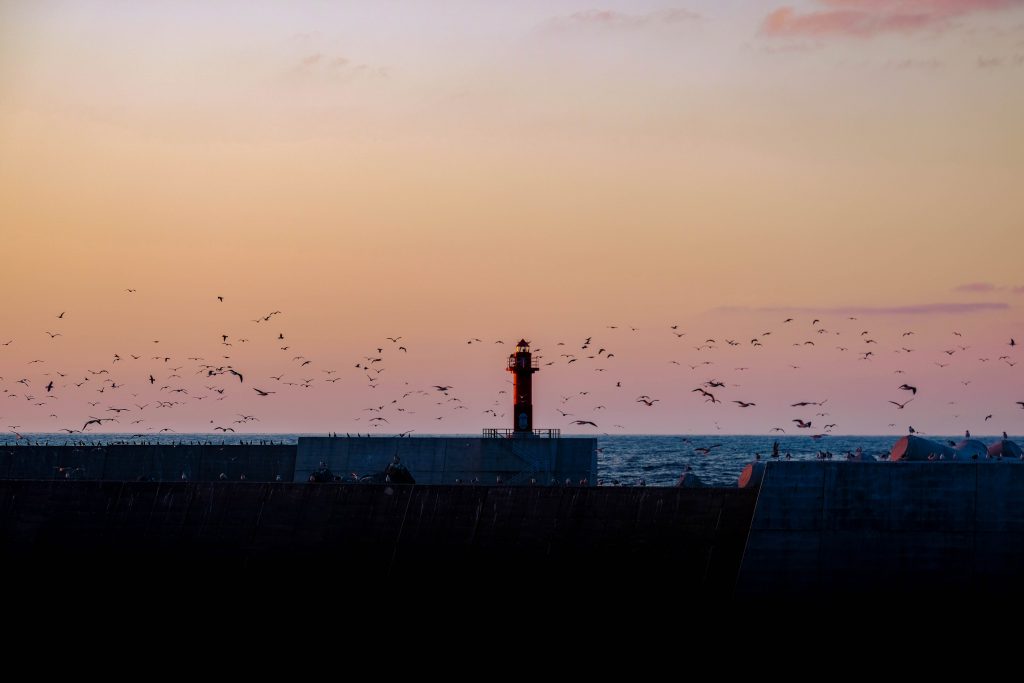 そして夕方。飛び立つカモメ。2月には流氷で一杯になる海(今回は10月末)。流氷の上を歩くアクティビティがあるそうです。万が一落ちても浮いてくるスーツを着るみたいですが、怖がりの私は無理かな。でも流氷は見てみたい。