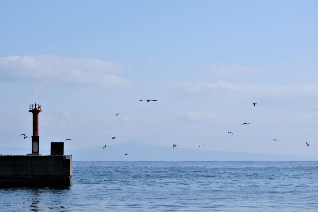 結局カモメばかり。奥にうっすらと見える島は国後島。