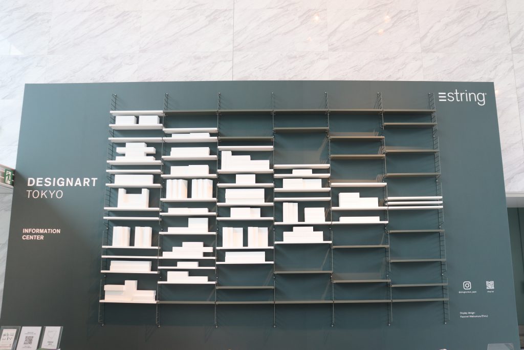 メイン会場兼インフォメーションセンターとなったワールド北青山ビル。会場に入ると、まず目に入るこちらの展示は、「StringⓇ」の製品であるシェルフで「再生」を表現しています。テレビやデッキのリモコンなどにある再生ボタンをシンボライズしています。インフォメーションセンターの入り口にふさわしい展示で来場者を出迎えました。