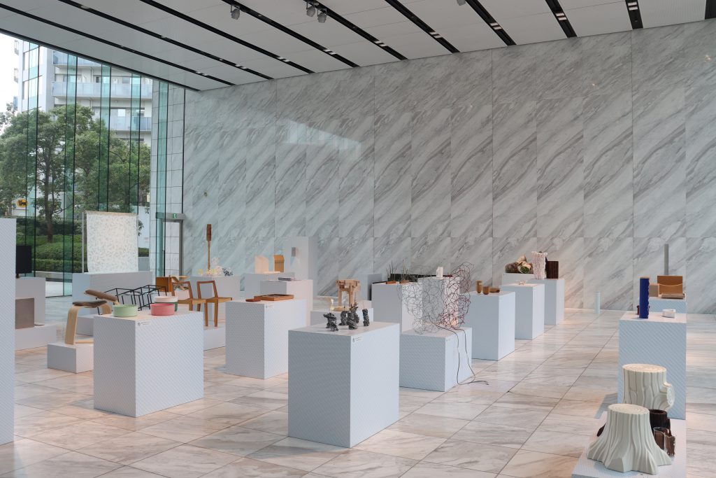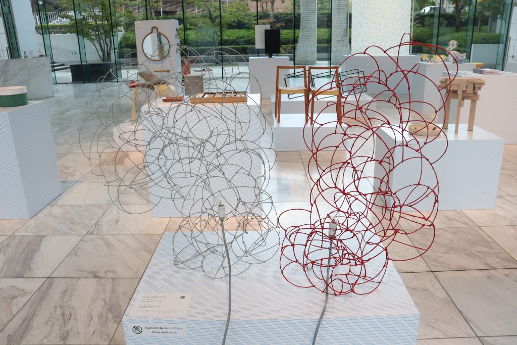 ソファやスツール、照明器具などの実用的なアイテムからとんぼが止まるための枝を立てる装置まで、クリエイターのさまざまな作品が並びました。初日から多くの作品が購入される盛況ぶりで、数日で展示作品の2/3以上が売約済みに。購入者が決まってからも会期中は展示を継続し、多くの来場者が作品を一点一点じっくりとご覧になっていました。