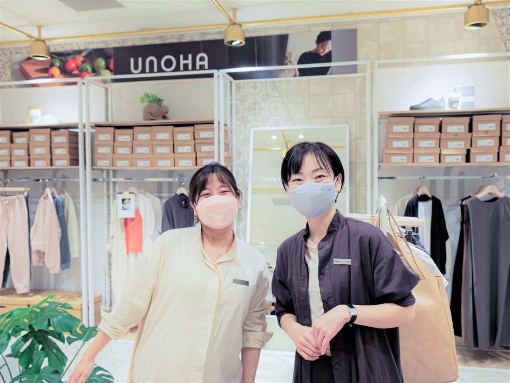 「UNOHA」はスポーツメーカーのアシックスならではの機能性をベースにヘルス&ビューティやワークアウト、ヨガ、環境問題といった分野に興味を持つ女性をターゲットとしたブランド。商品にはサステナブルな素材を採用する取組みもしているので、そのことをお客様にも伝えていきたいです。最初は履き心地がよく知名度があるシューズから手に取られる方が多いですが、ウェアをご紹介をする中で、もの作りやコンセプトに共感いただけます。多くの方にブランドの魅力を伝え、ファンになっていただきたいですね。