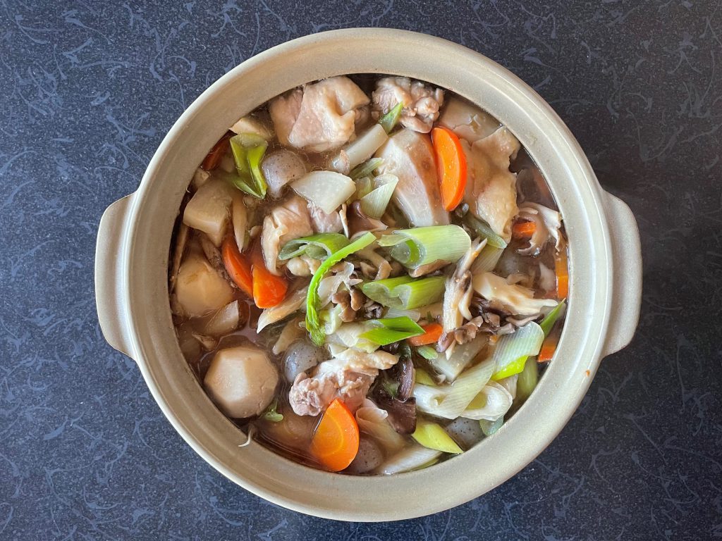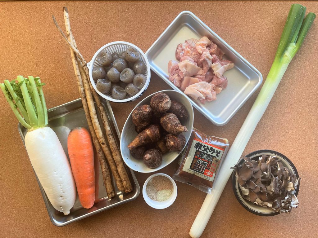 里芋10個/鶏もも肉200g/大根1本/ニンジン1本/ゴボウ3本/ネギ1本/舞茸1房/こんにゃく100g/顆粒だし(かつお、昆布、煮干し)適量/味噌 大さじ1.5杯/水 適量