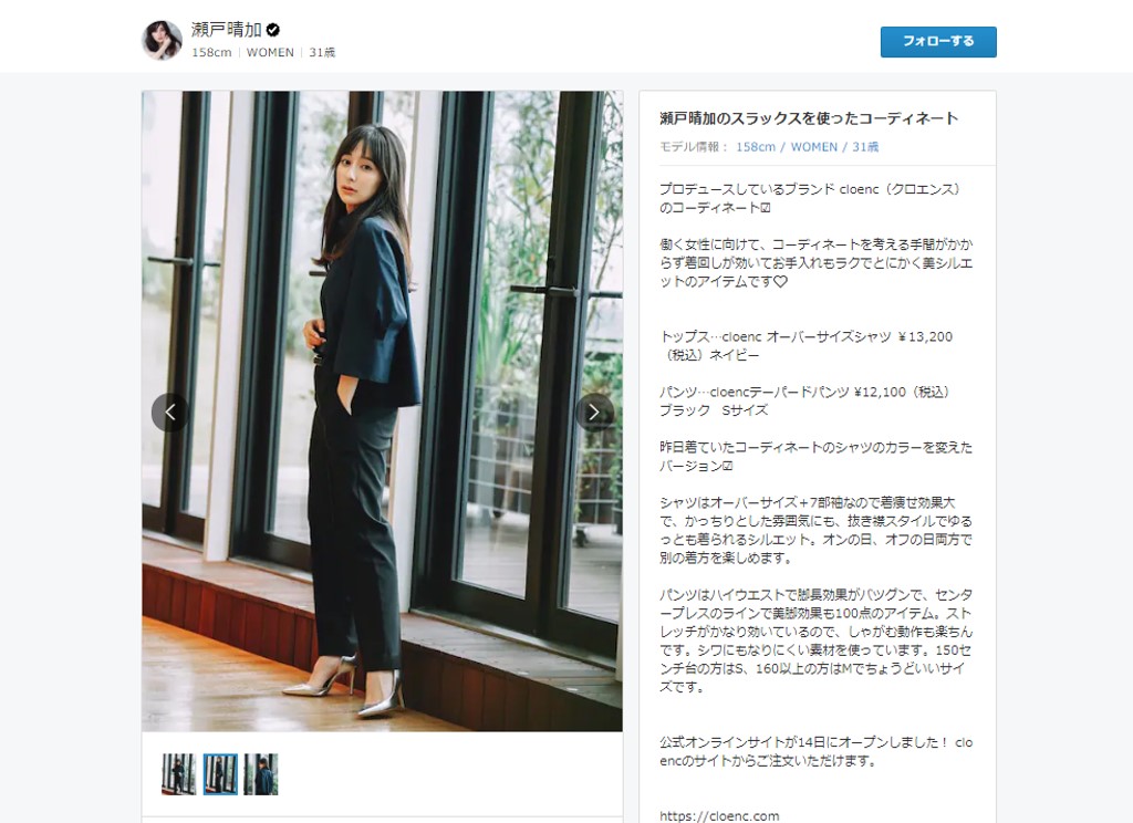 ――オリジナリティとリアリティ、どちらも大事ということですね。ちなみに瀬戸さんはインスタグラムもやっていますが、WEARとインスタグラムで投稿内容や画像の作り方は異なるのでしょうか?