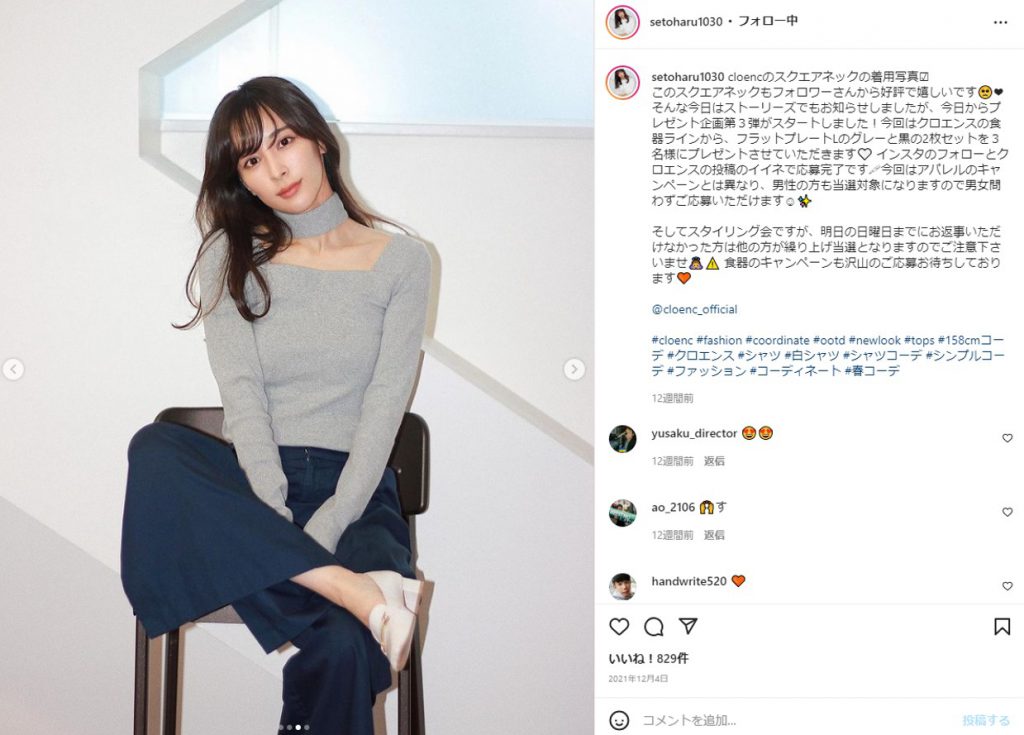 せとはるか/学生時代から女子大生向けメディアの編集長などを経験し、卒業後はアパレルブランドとのコラボレーションやPR活動、コンテンツ制作などを手掛ける。現在はインフルエンサーとして様々なプロジェクトに関わるほか、洋服とテーブルウエアを展開する「cloenc」のブランドディレクターとしても活躍中。特技は、料理、カメラ、ゴルフ。
