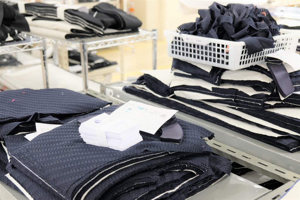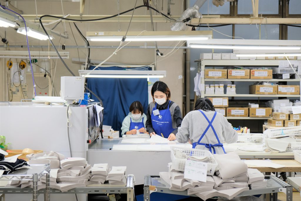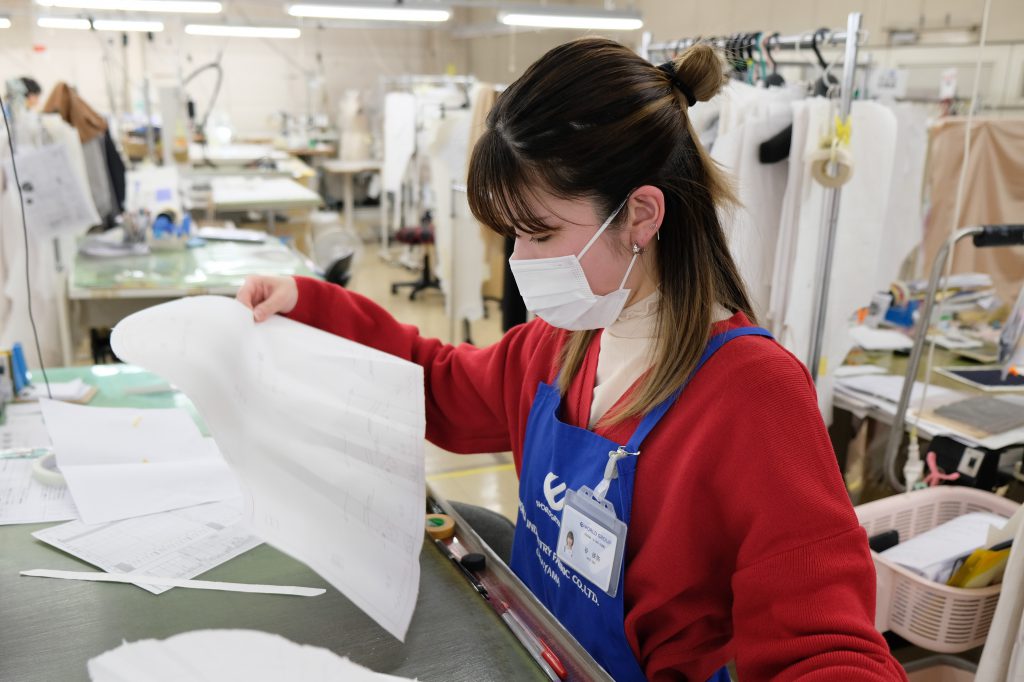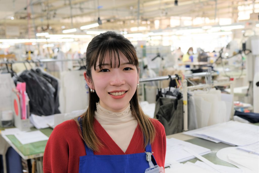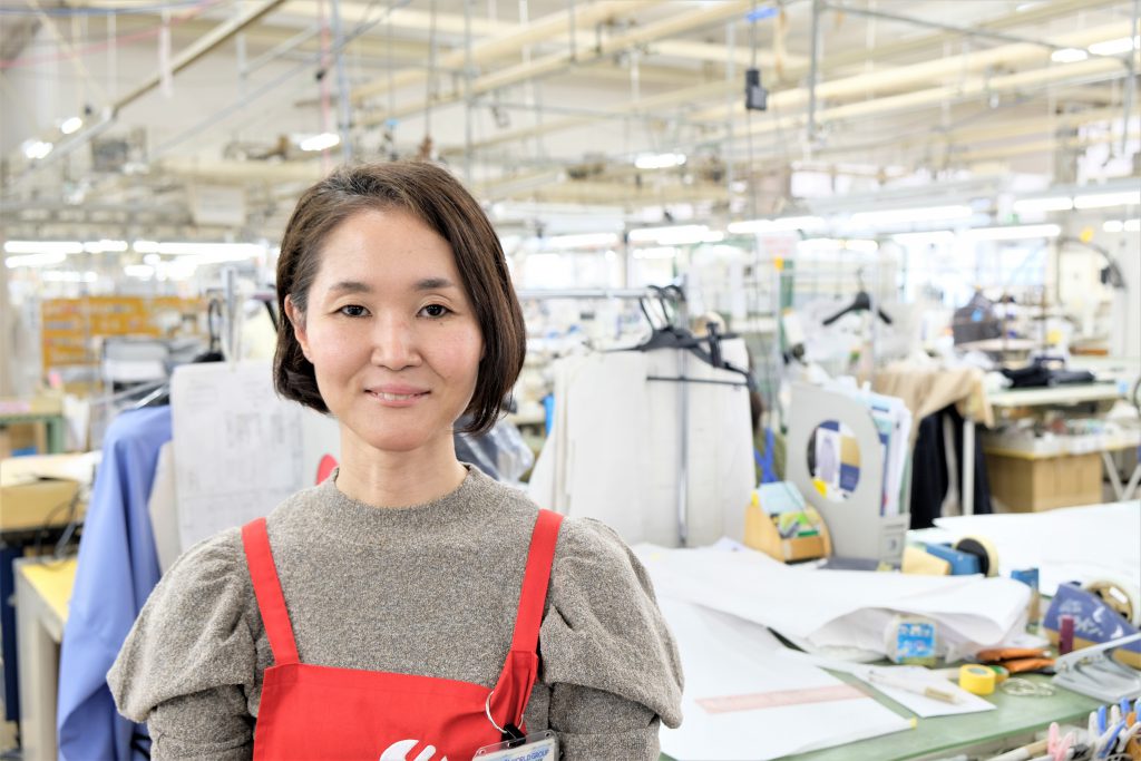 入社してすぐは、コロナ禍で医療用ガウンを縫っていた時期でした。その後、皆に教えてもらいながら仕事を覚え、現在はサポーターとしてラインの進捗を管理する役割を担っています。時間ごとに工程は変わりますから、全体の進捗を見つつ、その後の工程でメンバーの手が空かないように調整し正しく縫えているか仕上がりも確認します。誤ったまま縫っていないか、不良箇所が無いかのチェックですね。不良のまま進めると修正が入り、そこがロスに繋がりますから。