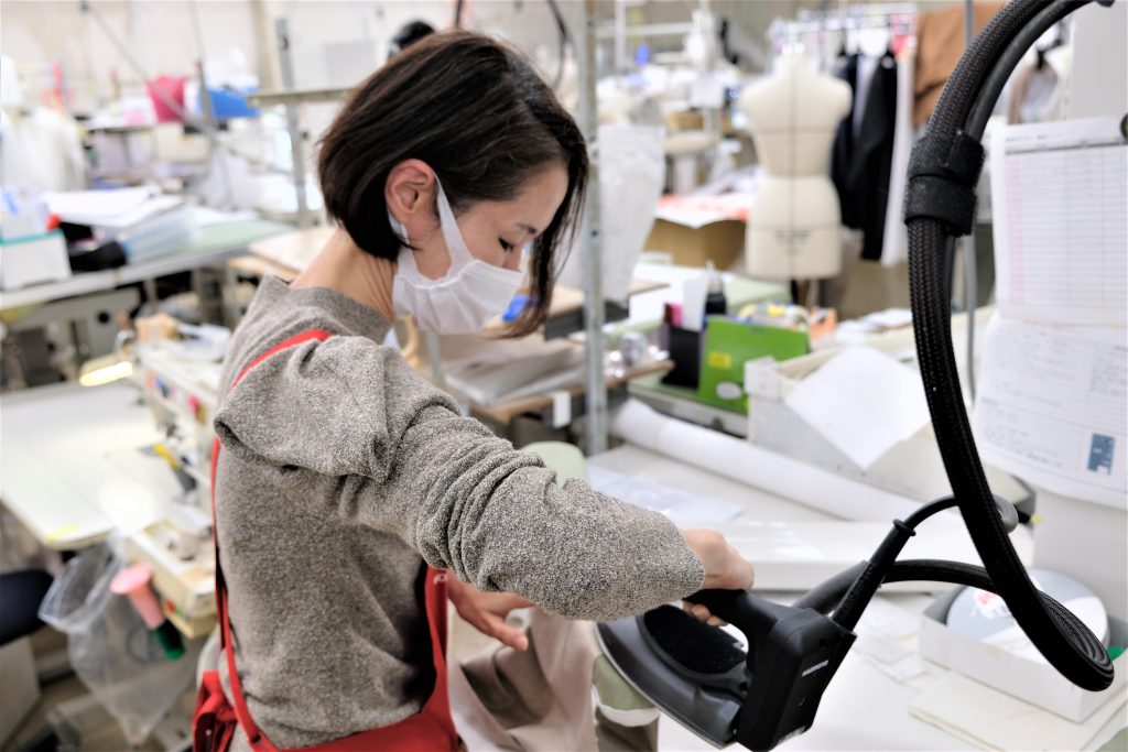 学生の頃は工場に勤めるとは考えていなかったんです。でも専門学校時代に先生に薦められて見学をしたら、全然イメージが違って。1点サンプルを縫っているところを見て、打合せをしながら創り上げる姿に興味を持ち入社、現在19年目です。