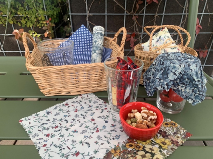 この取組みはまず、2020年10月、会社に残っている古紙を使いエコバッグ作りのワークショップからスタートしました。その後11月には、ワールドグループの直営工場 センワに残っているポンチ素材で定期的にマスク作りのワークショップを開催。以降はしばらくコロナ禍で開催を控えていたものの、再び2021年11月にはミツロウラップを作るワークショップを、2022年1月には好きな香りで香水・ヘアオイルを作るワークショップを経て、母の日に向けては、廃棄衣料でカーネーション作りを行いました。