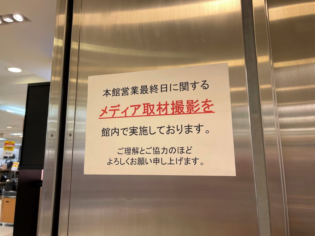 館内にこの様な掲示がしてあるものの、メディアというより一般顧客の記念撮影で溢れています。いや、懐かしむその眼差しは元従業員なのかもしれない、などと想像を膨らませながら私もどんどん回遊。