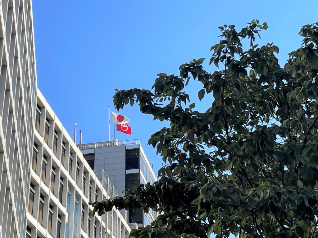 小田急の公式Twitterによると、通常毎月1日に掲げていた社旗を、お客様からの要望で急遽掲げたとのこと。これにより私を含む多くの中高年が、旗がきれいにたなびく瞬間を撮影しようと風向きをひたすら待つことに。