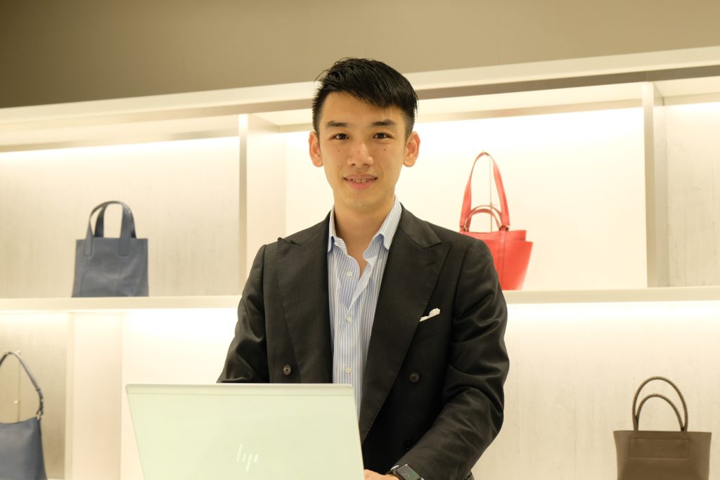 「HIROFU」への転職のきっかけは、母が購入した「HIROFU」のバッグを嬉しそうに見せてくれたこと。他のブランドと違う、シンプルさと上質さに惹かれてサイトを見たらちょうどリクルートメントをしていて「この商品に携わりたい」と応募しました。販売の仕事は初めてでしたが、始めたらとっても楽しくて。店長やセールスマネージャー、研修担当を経験し11年目です。現在は営業として都心を中心に担当し運営のフォローを中心に、ポップアップの際などは自ら店頭に立つこともあります。