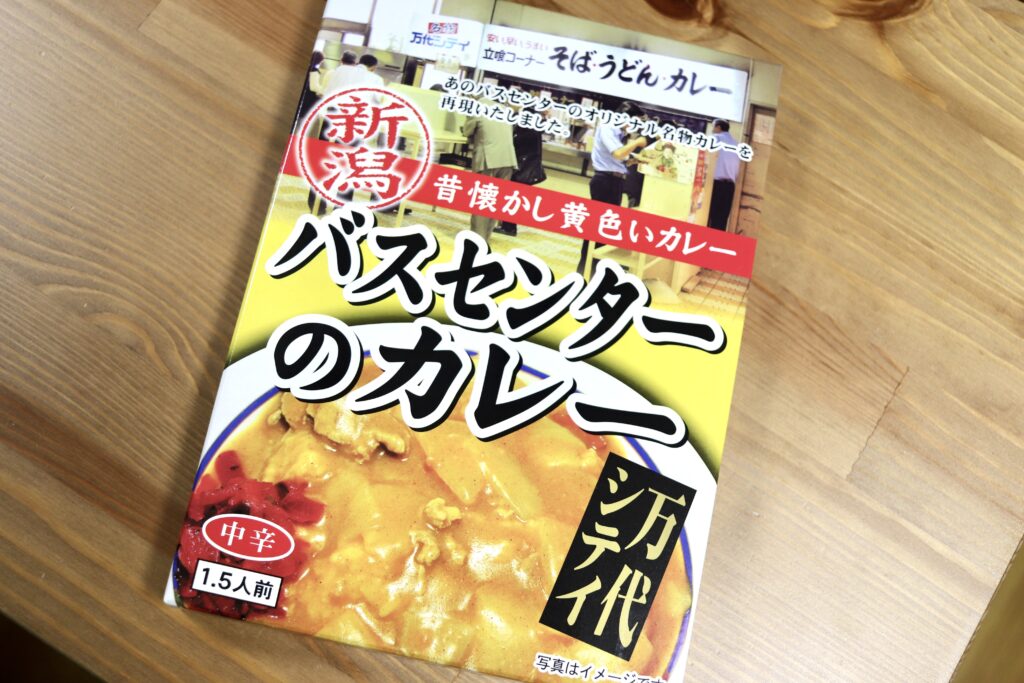 「新潟市中心部にある『万代バスセンター』内にある立ち食いそば屋『名物 万代そば』。新潟のB級グルメの定番かつソウルフードである通称『バスセンターのカレー』です。お店のメニューは蕎麦、うどん、カレーのみ。バスセンターのカレーはとにかく“黄色い”。真っ赤な福神漬けとのコントラストが食欲をそそります。見た目のインパクトで『甘口かな?』なんて侮ることなかれ。独自にブレンドされたスパイスが効いていて、玉ねぎや豚肉の旨味が凝縮された本格カレーなのです。その人気は、夕方にはルーが売り切れてしまうほど。少しもったりとしたルーですが、ライスは勿論、うどんや蕎麦にかけても美味しいです。TVのバラエティ番組や情報番組で取り上げられてますます有名になり、お店自体が新潟の観光名所の一部になっています」