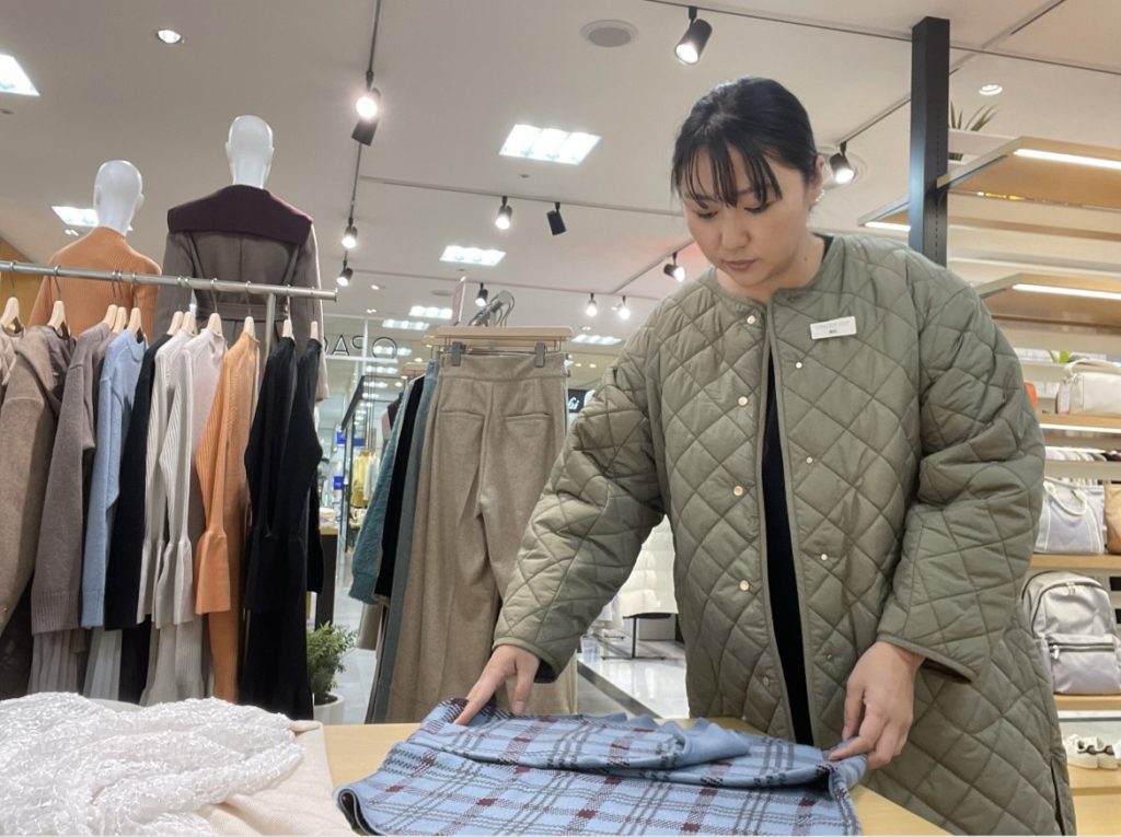 「お客様の入店時は必ずお客様の方を向いてご挨拶をすること、お買い上げいただいたお客様にはそれぞれの立ち位置からお礼のご挨拶をすることを店舗全員で心掛けています。また、特に繁忙時には、それぞれの立ち位置から出来るお客様への配慮のお声がけや姿勢、誘導のお声掛けの仕方などを朝礼などで共有します。常にスタッフ同士でアイコンタクトを取り、声を掛け合って、お客様がセールでのお買い物を楽しんでいただけるよう取り組んでいます」