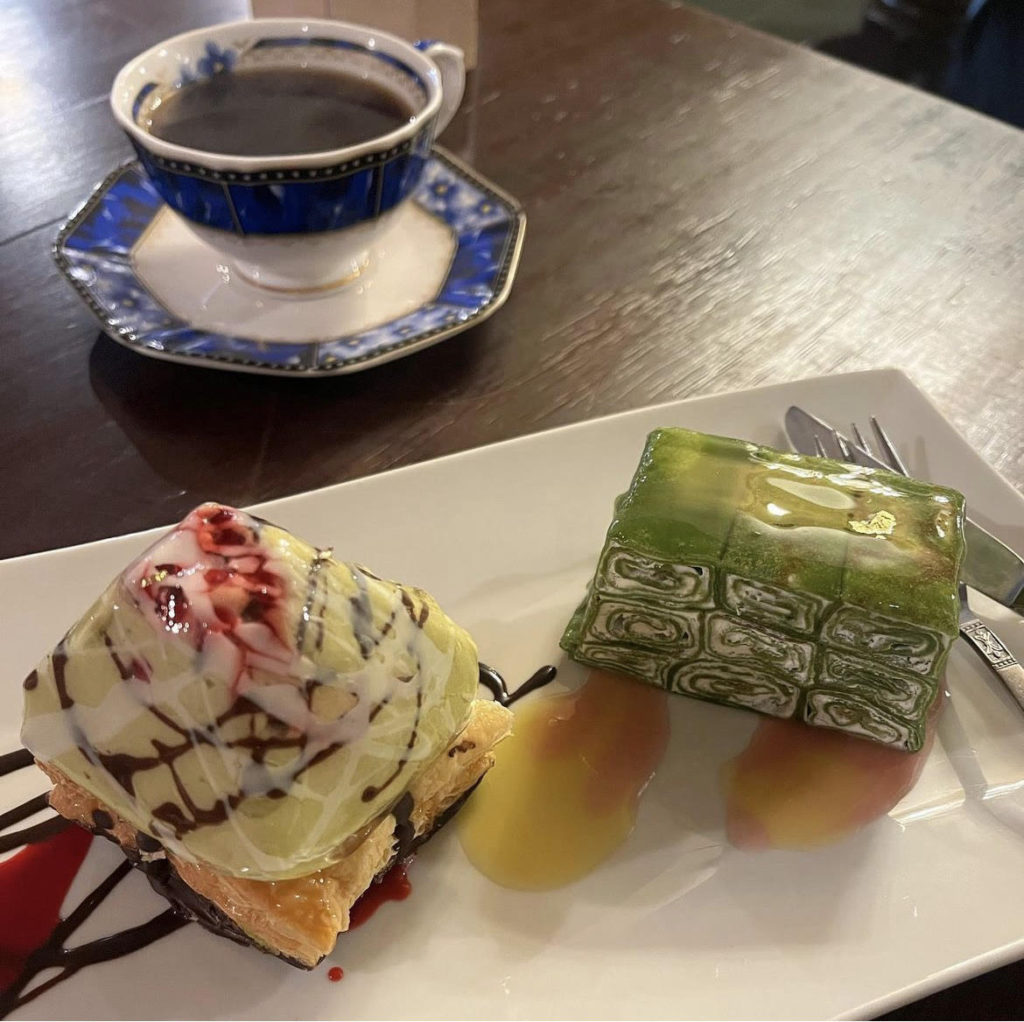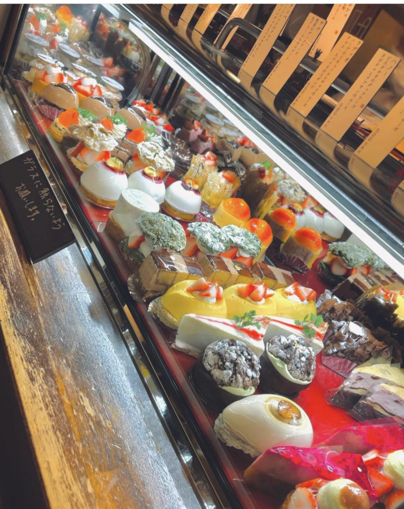 「夕方5時から開く、大人のケーキ屋さんです。このお店、『ケーキバー』という珍しいスタイルで、お酒やコーヒーも楽しめる大人な空間になっていて、未成年は入店できません。店内はアンティーク調で彩られており、高級感が感じられます。私自身、大の甘党なのでコロナが流行る前は飲みの締めによく行っていました。最近は、誕生日などの記念日に利用させてもらっています。ケーキが並べられたショーケースの中は、色鮮やかで芸術的。ずっと見ていられます。ケーキの種類は多くて30種類ほどでしょうか。独創的な見た目なので、一目見ただけでは味が分かりませんが、ケーキの名札にきちんと中身が書いてあるので大丈夫です」
