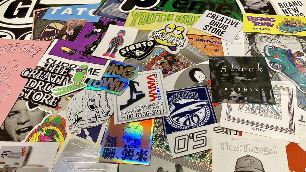 「元々は大学生の時にSupremeのボックスロゴステッカーが欲しくて、付録付きの雑誌を買ったことがきっかけです。ストリートブランドのステッカーに始まり、好きなアーティストや古着屋のステッカーを集めていたら、どんどん増えていきました。気に入ってるものほど、もったいなくて貼れないので、ほとんどが貼らずにとってあります。学生時代は自作のステッカーを作って、周りの人に配る自己満な活動をしていました(笑)。」