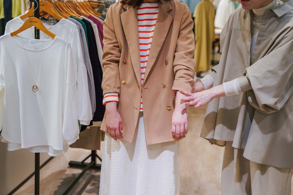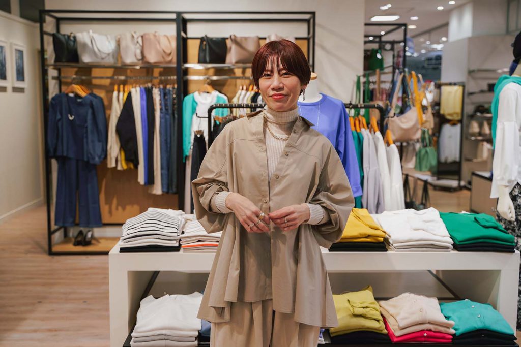 山本さん:「錦糸町店に続いて、こちらの店舗もすごく広くてびっくりしました!きれいめから、カジュアルまで幅広いカテゴリーの服が揃っているのがいいですよね。あと、キッズ服もあるからリンクコーデも楽しめますよね。横浜という土地柄、ファミリー層も多そうですし、そういった楽しみ方もぜひ提案してほしいですね。