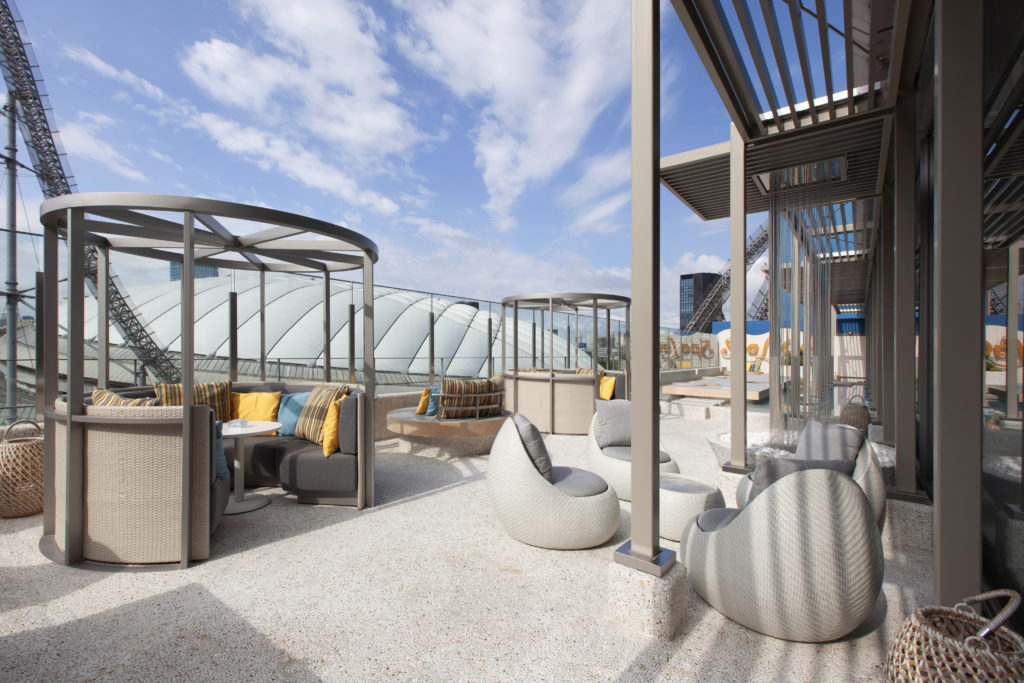 佐々木:あとは東京ドームシティのラクーアも手掛けました。スパリゾートは得意分野で、先方の10周年のリニューアルに対して建装と家具の受注を。東京ドームにはご縁があって、ドームの座席のほか、VIP席空間のリゾート化も。球場の周りや中で見る席をちょっと贅沢にという所で声を掛けてもらえる。