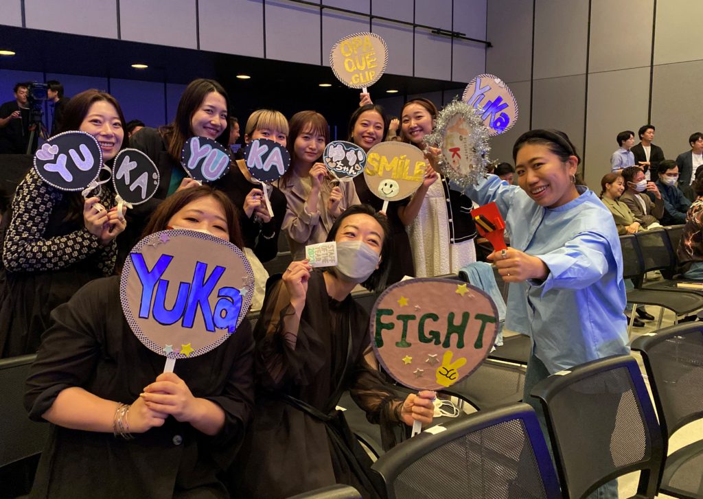 審査員のみなさんが「本当に僅差だった」と語る大激戦の第1審査。yuka.aさん、見事通過しました! 駆け付けたスタッフからの応援もさらに熱が入ります。