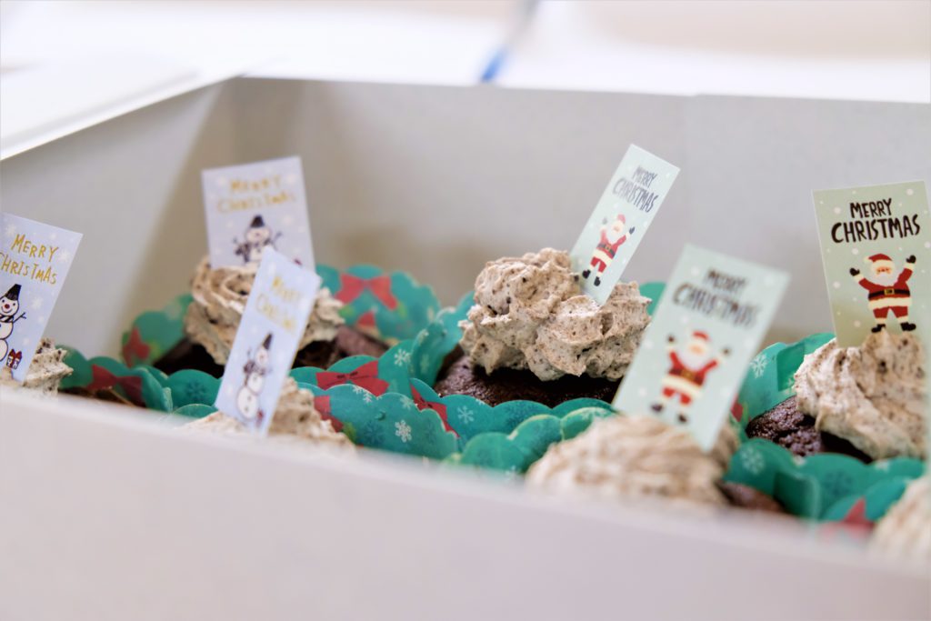 キッシュや華やかなサラダ、カナッペに加えてクリスマスケーキまで🌟。ワールドビジネスサポート 河内さん、石川さんを中心に今回の「つなぐ ワールド」のためにメニューを考えていただき、手作りで用意いただきました。