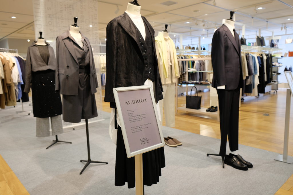 リニューアルにより、これまでの倍に拡大した3階 プレスルームには、24年春夏にブランドデビューとなる「アンタイトル」発のラグジュアリーライン「オブリオ」と、来年40周年を迎える「タケオキクチ」をメインにディスプレイしながら、ふだんは3階で活動をしていないブランド群も含めて春の新作をメディア関係者にご覧いただきました。