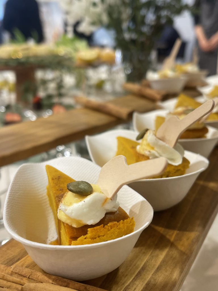 メディアへのおもてなしは “おやつの旅で、くらしを創る”お菓子ブランド「SEKAI NO OYATSU」の美しく、美味しい品々が並んだ。