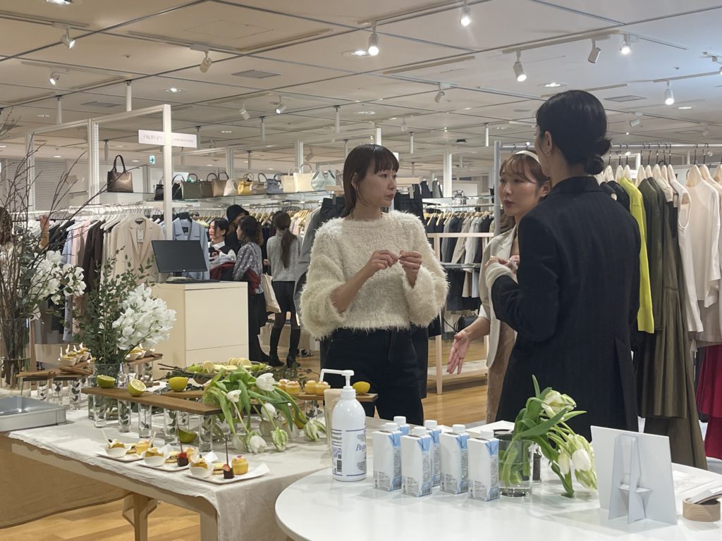 両日共18時~21時はインフルエンサーを招待。プレス担当のほかブランドメンバーが応対しながら春夏の新作をご試着、セレクトいただいた
