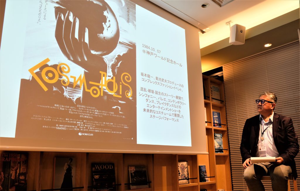 スライドを使い、以降のブランド開発をはじめ、大型ストアの先駆けとなった「オぺーク ギンザ」やセレクトショップ「ドレステリア」、現在につながる「タケオキクチ 渋谷明治通り本店」の店づくりを経て、現在丹生さんがプラットフォーム事業として取り組む異業種のブランディングまでを紹介しました。